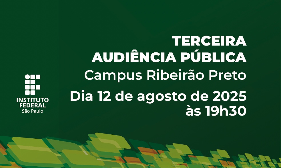 A comunidade de Ribeirão Preto e região está convidada a participar da terceira audiência pública promovida pelo Instituto Federal de São Paulo (IFSP), como parte do processo de escuta social para definição dos cursos e eixos tecnológicos que serão ofertados no novo campus da cidade.